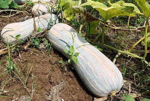 今年3月,父親把“健美蜜本”南瓜播種了,粒粒發(fā)芽,栽了100株,多的一點(diǎn)地栽了其它蔬菜。我?guī)缀趺恐芑乩霞乙惶?,一是看看父母,二是帶一些菜回來。因?yàn)槭俏屹I的種子,也特別關(guān)注一些,每周看看,結(jié)瓜后,我還拍了一些南瓜照片。