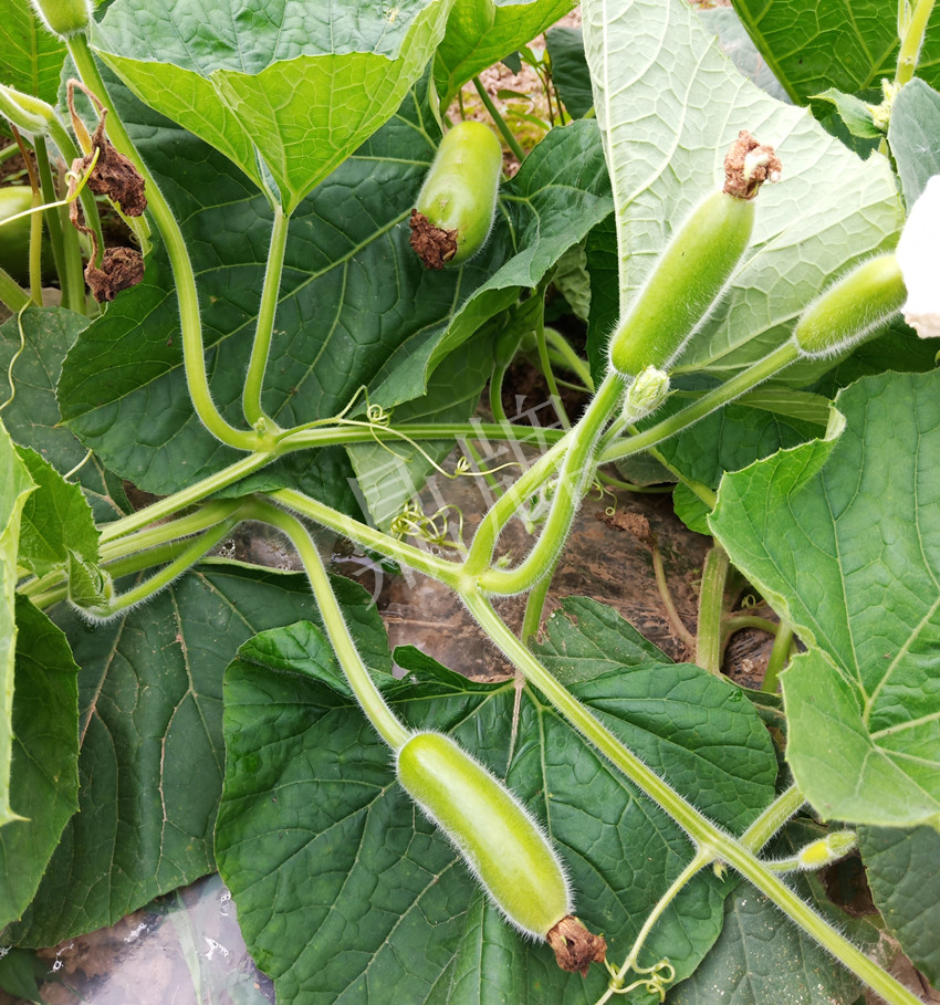比如,“春棚如意”瓠瓜特別早,前期開(kāi)花特別多,有的植株基部開(kāi)花1株有5~6個(gè)雌花,但我每批次只留2~3個(gè)健壯果,其它的弱小瓜(包括坐果枝)一并剪除,過(guò)二天再留第二批果,如此循環(huán),基本上是隔2天采收一批瓜。為什么要采用這樣的留瓜方式呢?不是越多越好嗎?其實(shí),在《良種與良法》資料中說(shuō)明了,如果每批瓜留多了,養(yǎng)分供應(yīng)不足,就會(huì)出現(xiàn)畸形瓜,沒(méi)有商品性。