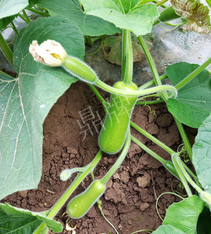 今年示范的新品種是“春棚如意”瓠瓜??炊ε铺峁┑馁Y料說(shuō)明,是一個(gè)極早熟品種,前期坐果特別集中,這樣的品種正是我喜歡的,可以搶早賣(mài)上好價(jià)錢(qián)。因大棚安排滿了(大棚內(nèi)主要安排的是鼎牌絲瓜“優(yōu)比1號(hào)”、鼎牌甜瓜“玉奶香2號(hào)”、鼎牌南瓜“小胖墩”),所以,我在大棚只種了5分地的“春棚如意”瓠瓜,在露地種了1畝5分地,為了減少成本和勞動(dòng)力,我在露地采用爬地栽培。