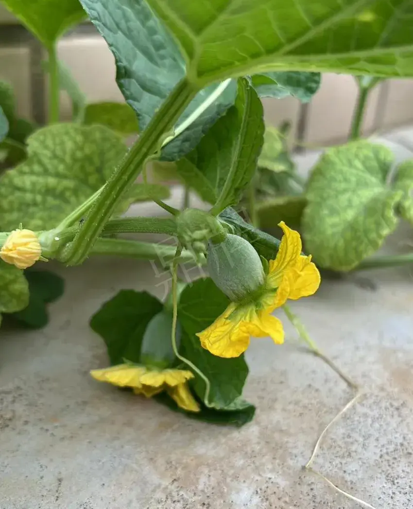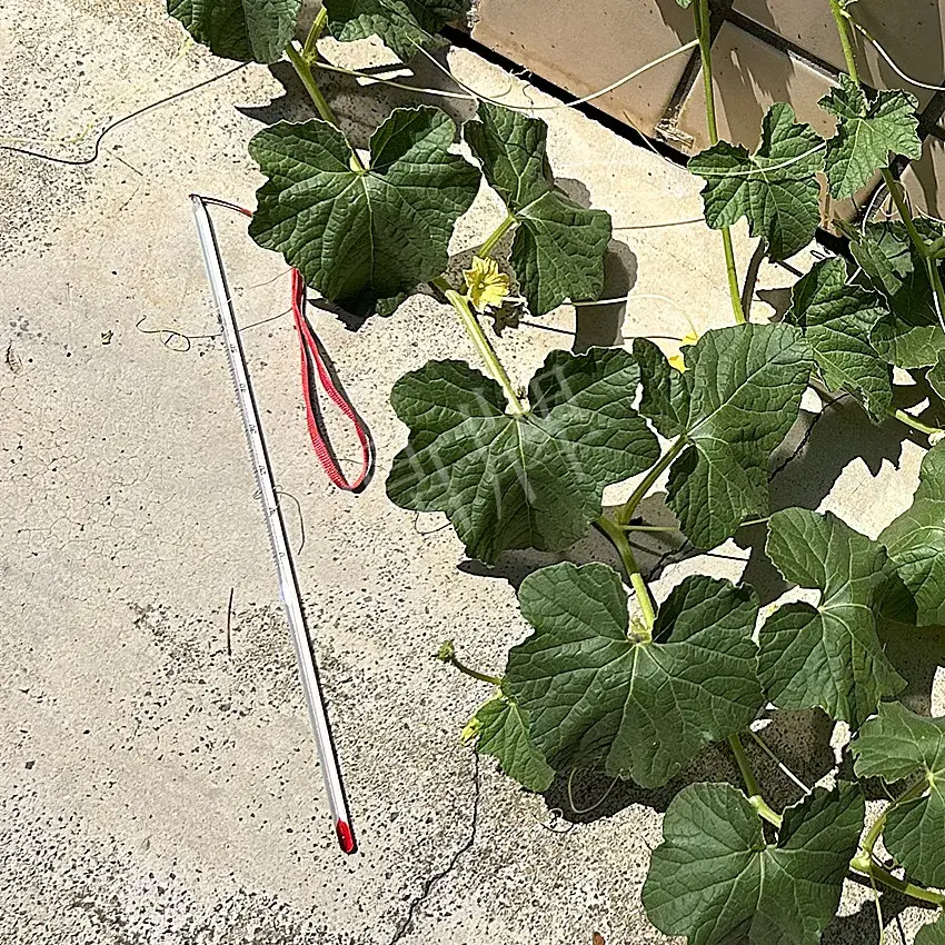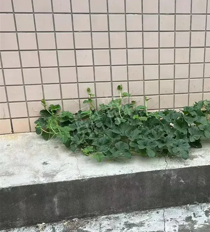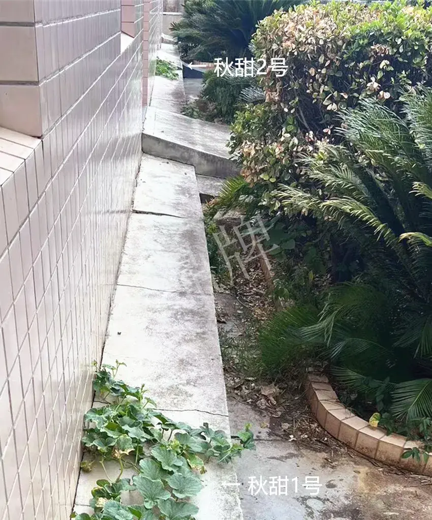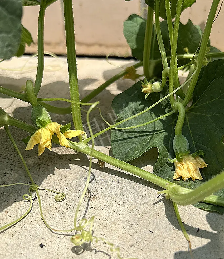 今日請各位看看本公司科研人員做的一個奇葩試驗——在特高溫的條件下,讓甜瓜苗在水泥板上生長。