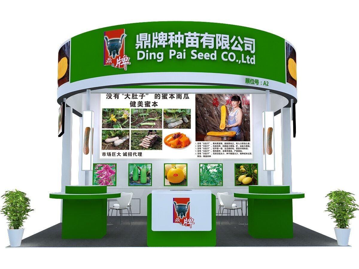 “鼎牌”位于展廳正門進(jìn)口處A2展位。今年重點(diǎn)展示南瓜創(chuàng)新品種——健美蜜本。沒有“大肚子”,才敢叫“健美”!