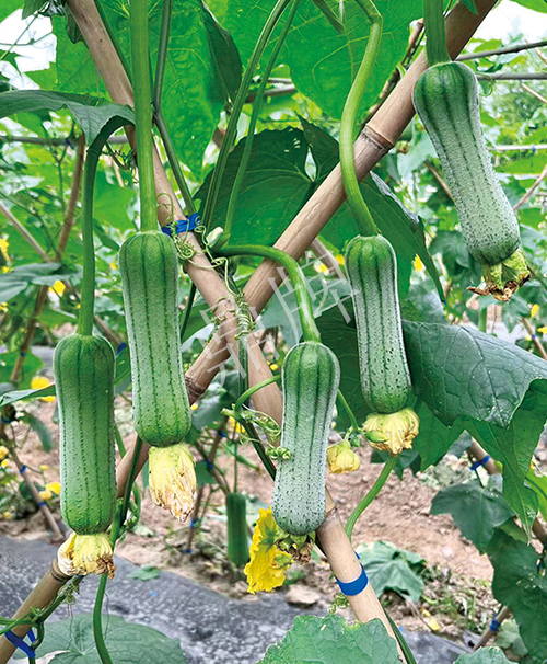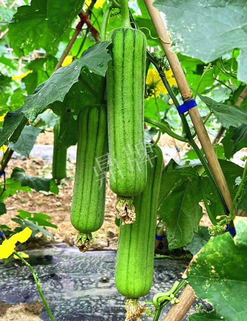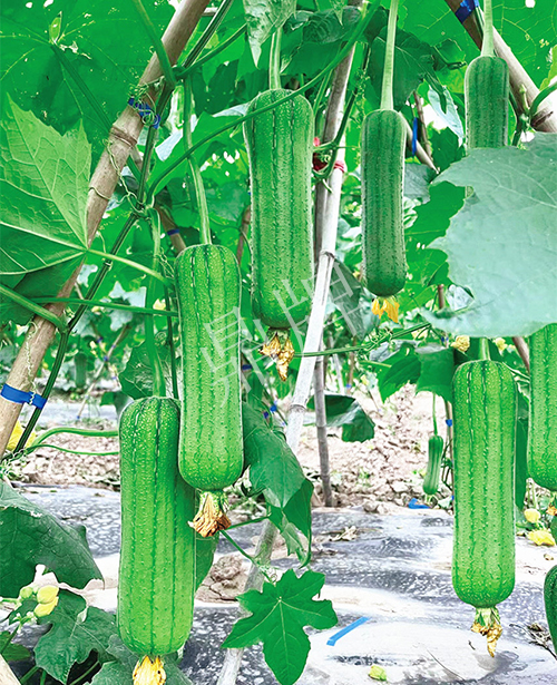 三倍體硬果絲瓜,可增產(chǎn)1倍。早熟,中棒,因坐果特多,果形、果色太美, 客戶建議改名為硬果太美。已申請國家新品種保護(hù)。用種:10~13袋/畝。