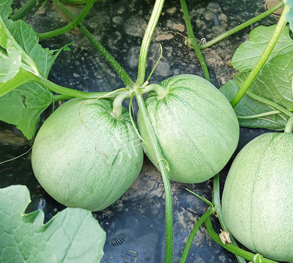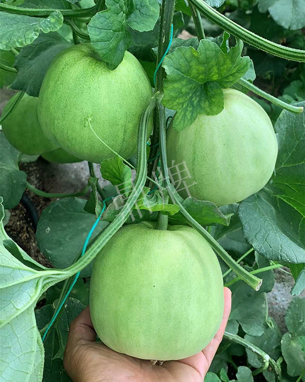 成熟后,果皮淺綠透著微白,果肉淺玉,甜度高達(dá)19.5度;早熟,單瓜重600克左右;多雨天氣不易裂瓜,棚室、露地都能獲得豐產(chǎn)。